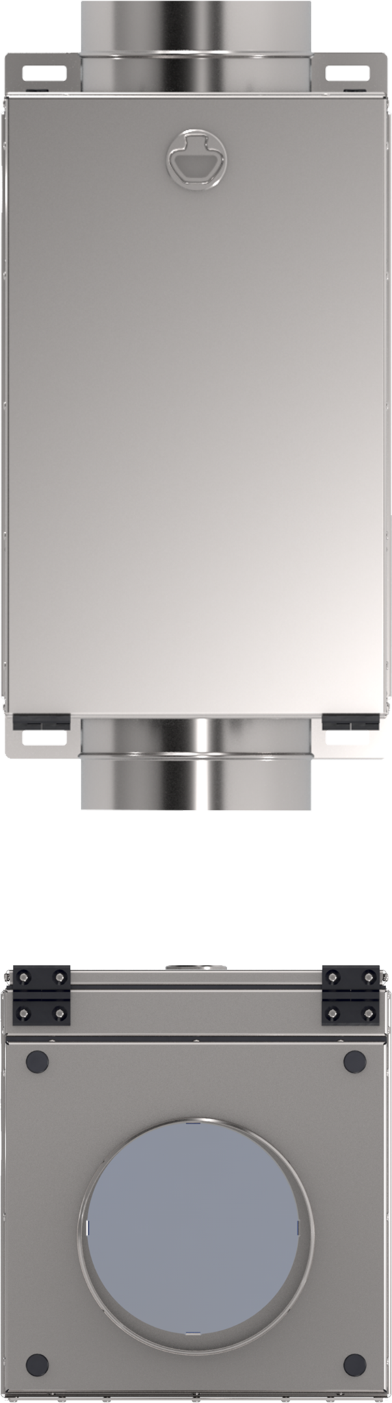 Имеет встроенный фильтр H13 увеличенной площади и срока службы. Герметичное прижатие фильтра и верхней крышки за счет EPDM резинового уплотнения. Теплошумоизолированный корпус из экологичной нержавеющей стали.