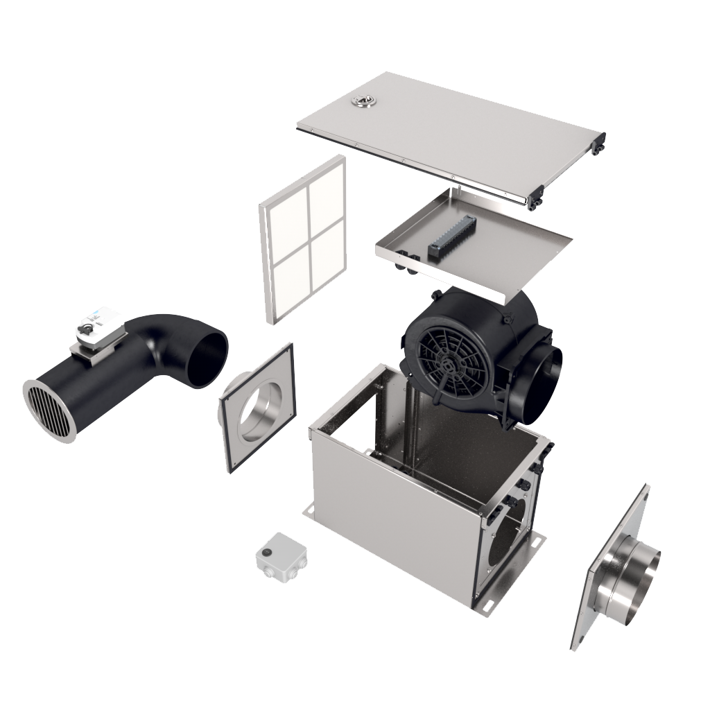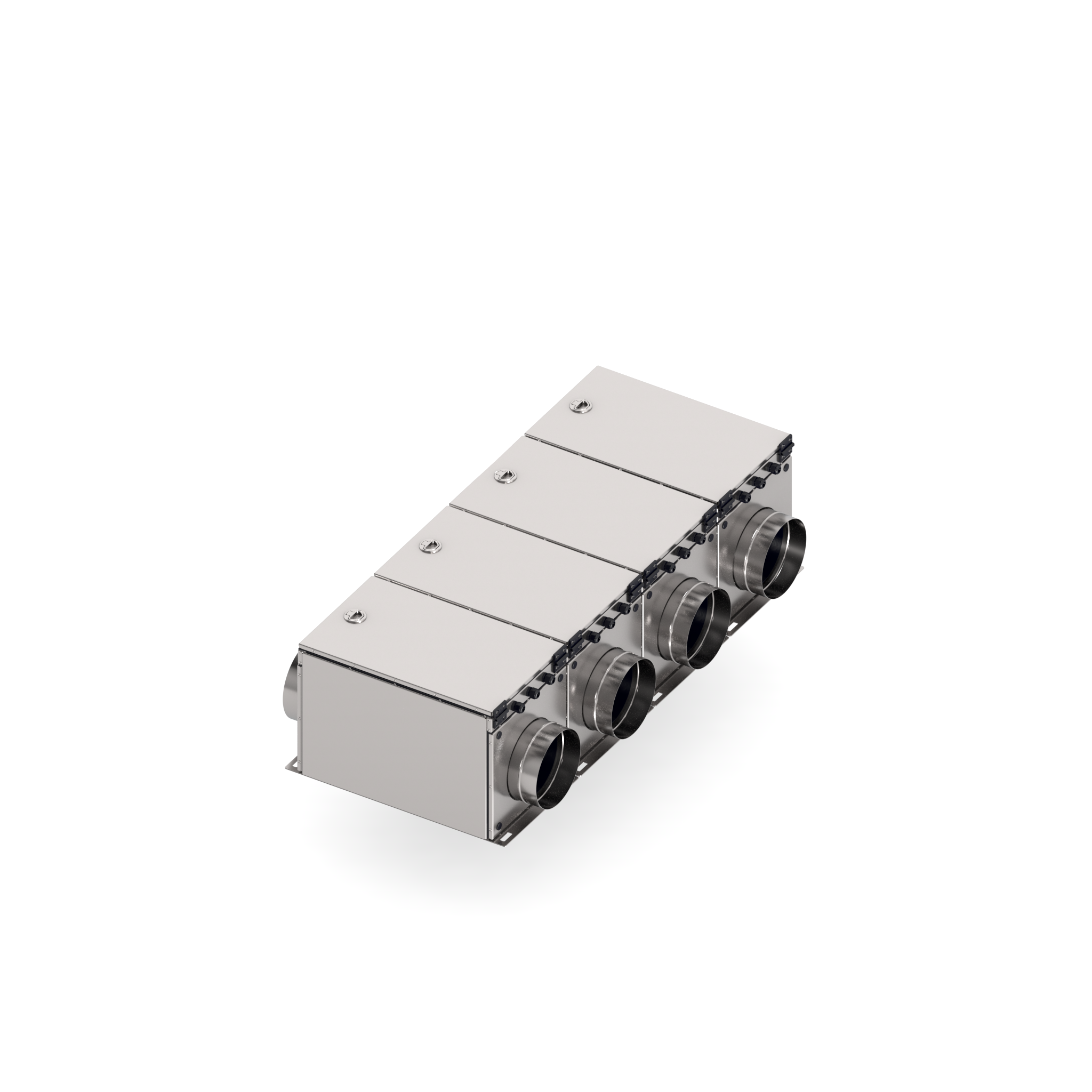 Вытяжная установка Лайфа Модуль, состоящая из 4-х модулей, суммарной максимальной производительностью 3200 м3/час, с фильтром класса очистки воздуха G4, автоматикой WF. В комплекте 4*4 дополнительных фильтра.